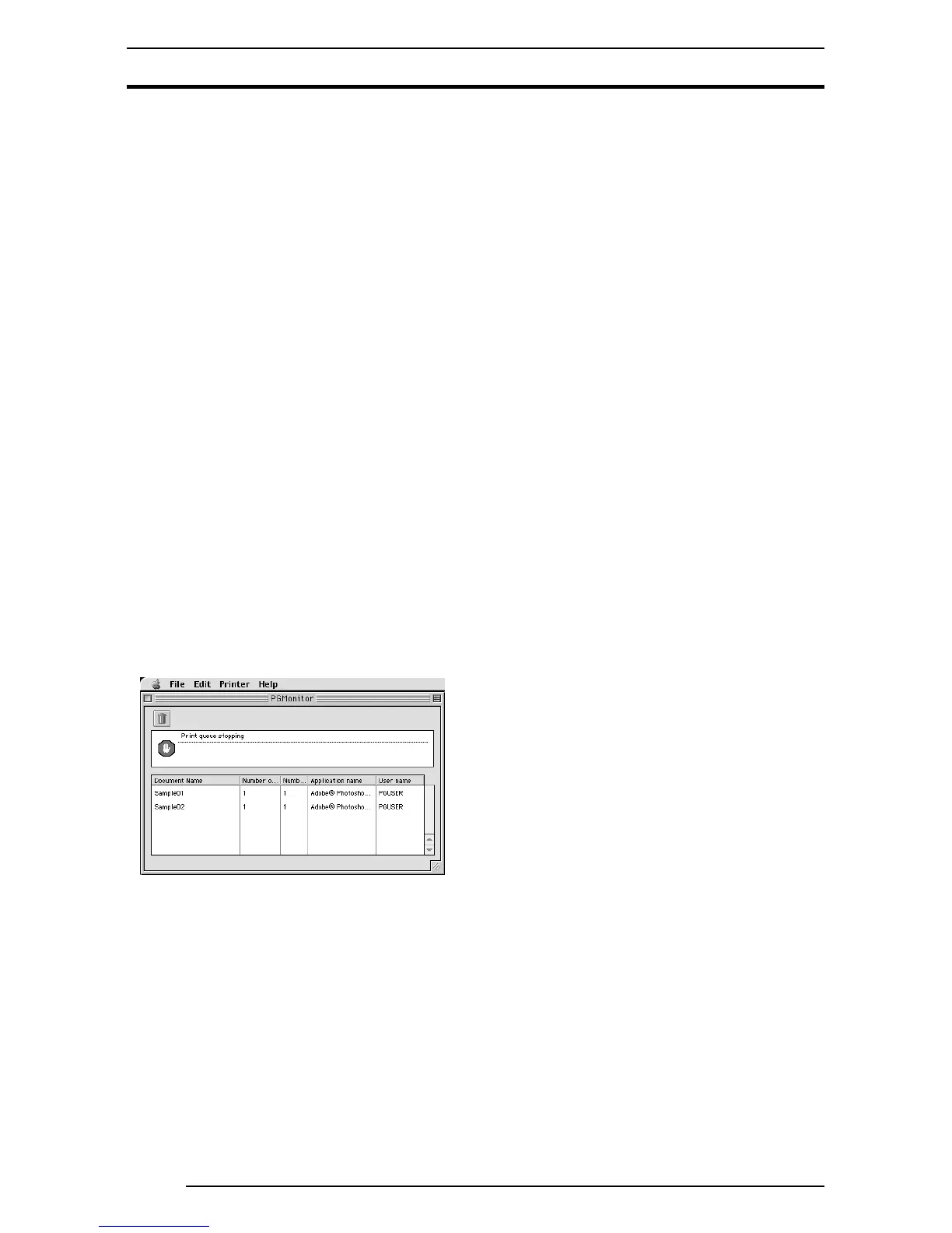 Click [Print queue stop] in the [Printer] menu. If a print job is