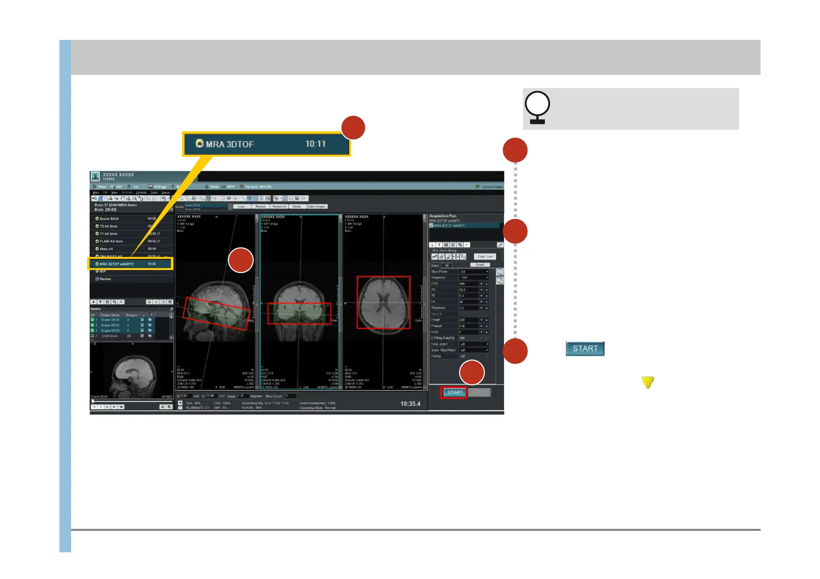 images. Position the slice lines for MRA.