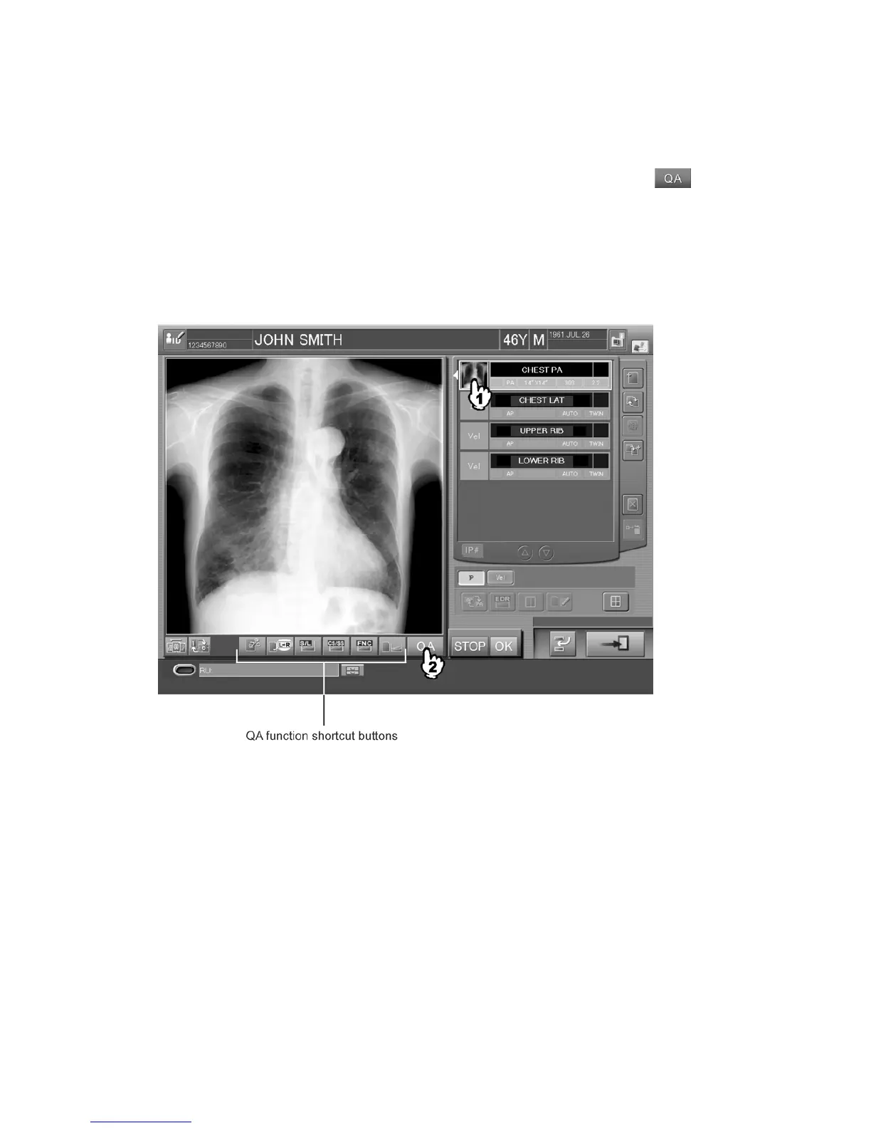When the QA function shortcut buttons are selected, any of the following processing will be