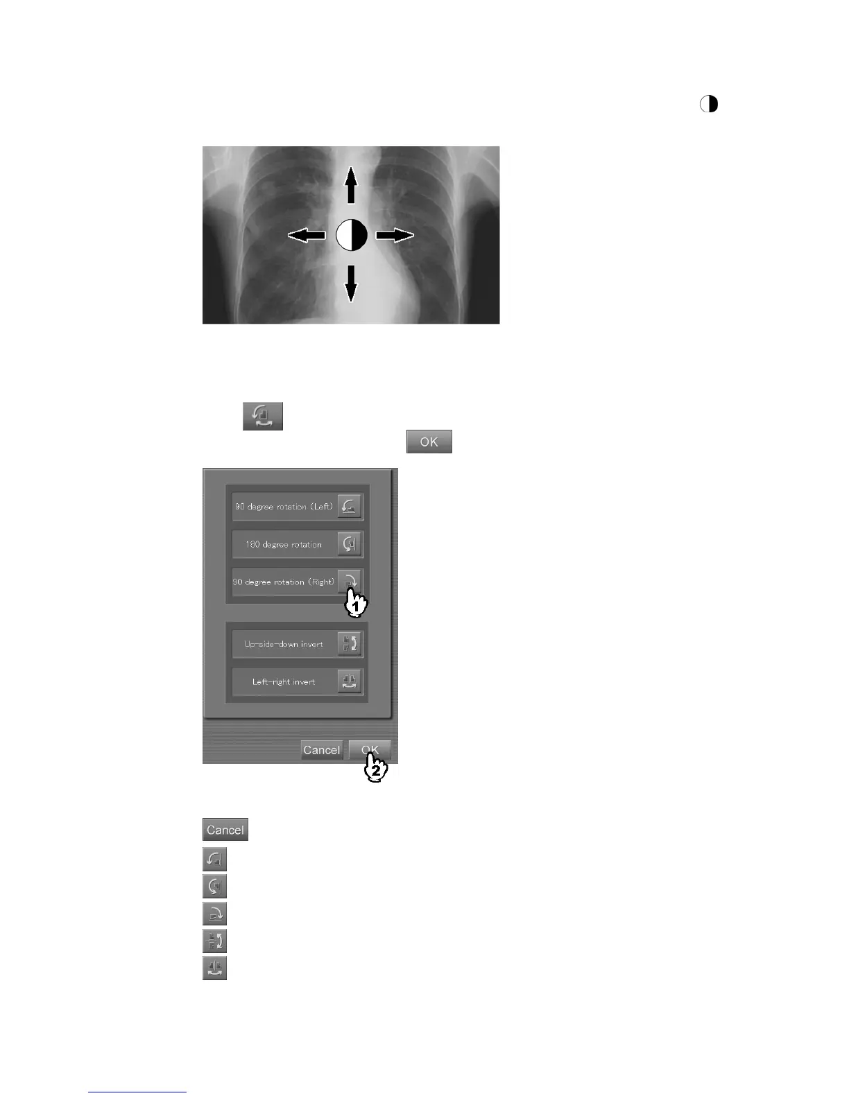 : Rotates the image 90 degrees to right.