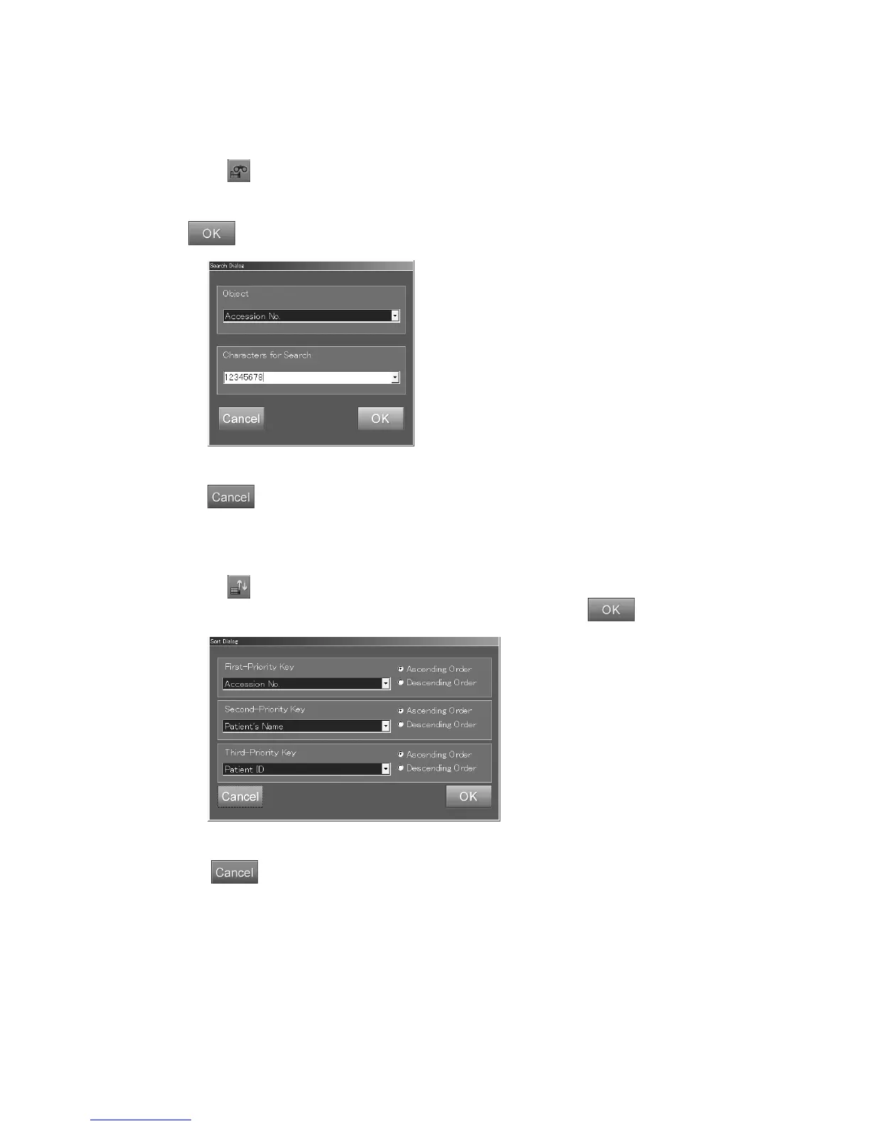 Select the information item to be searched, and enter the character string to be searched, (if the