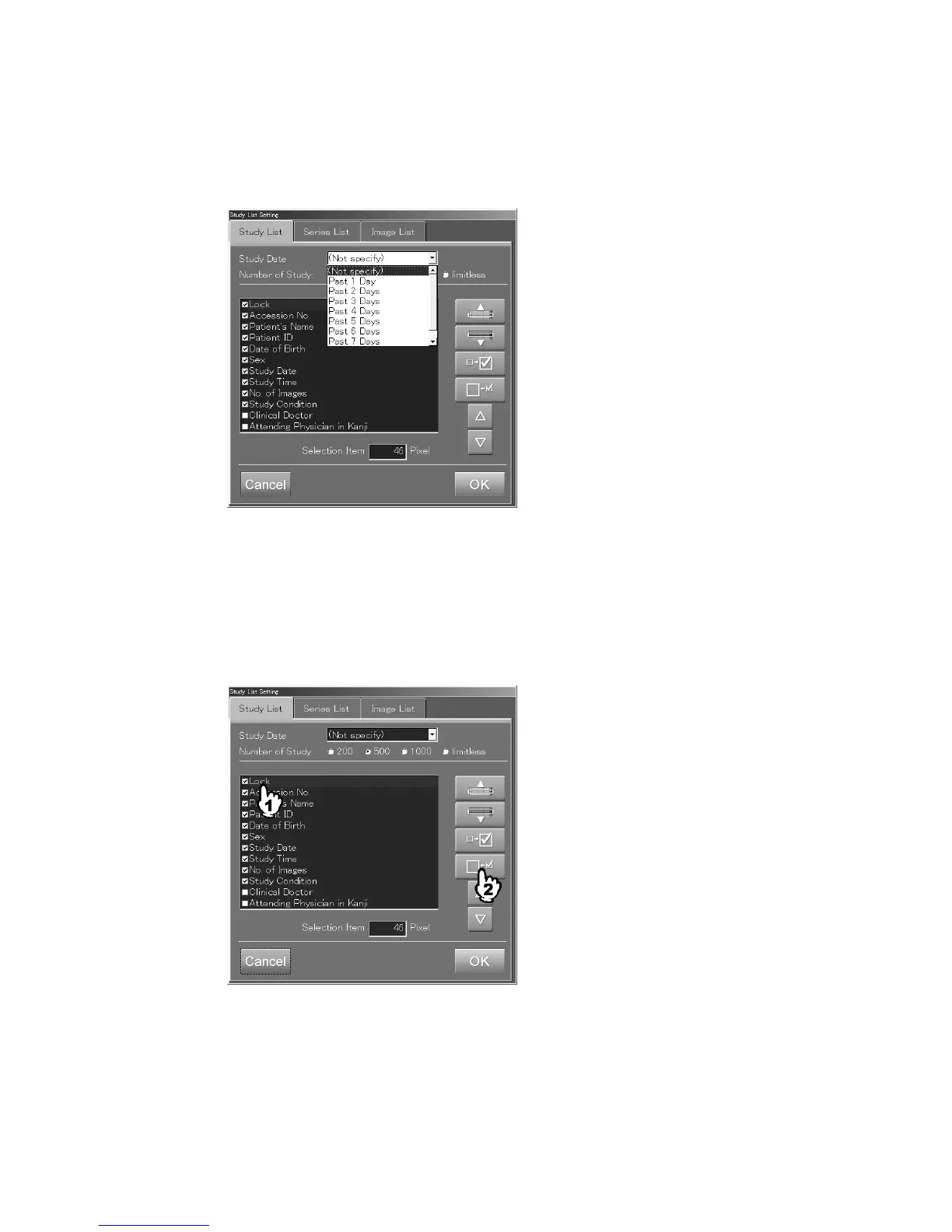 Select the number of study information items to be displayed in the “Study List” folder. If “limitless”
