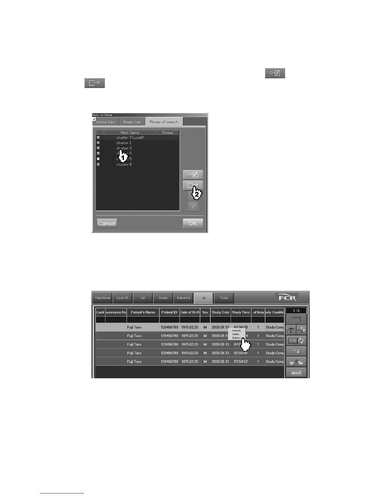 “Delivered” / “All” / “Today”. Select the study to be redelivered, and then select “Delivery” from the