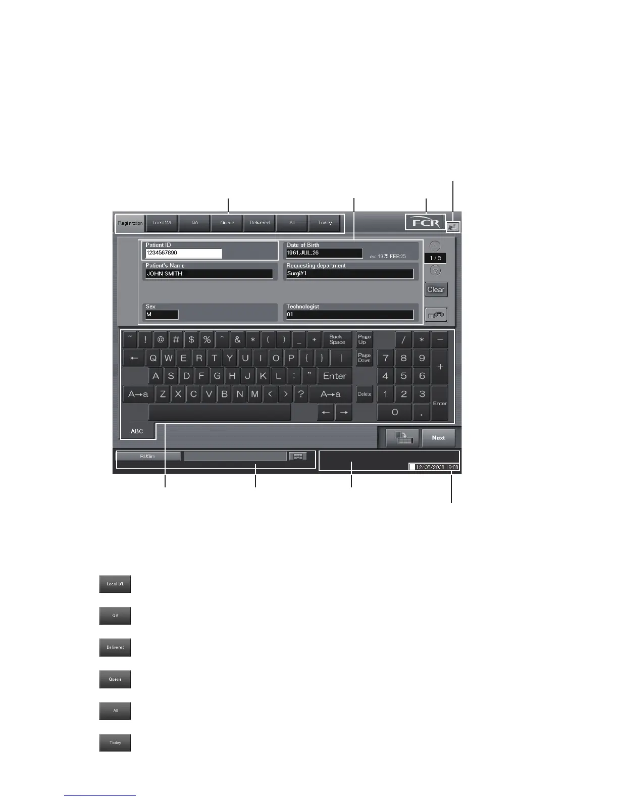 Explained herein is how to operate the list tab, screen keyboard and other input fields on the “Patient