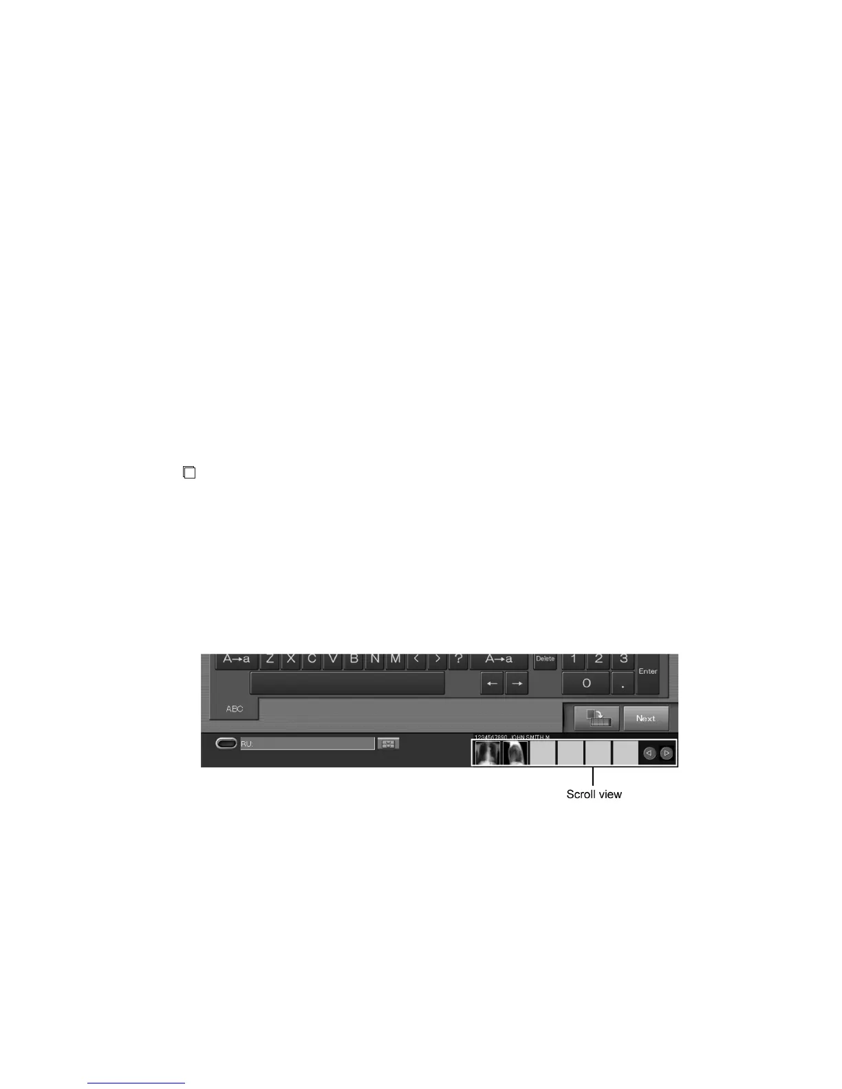 screen. The scroll view is displayed in the “Patient Information Input Screen”, “Exposure Menu