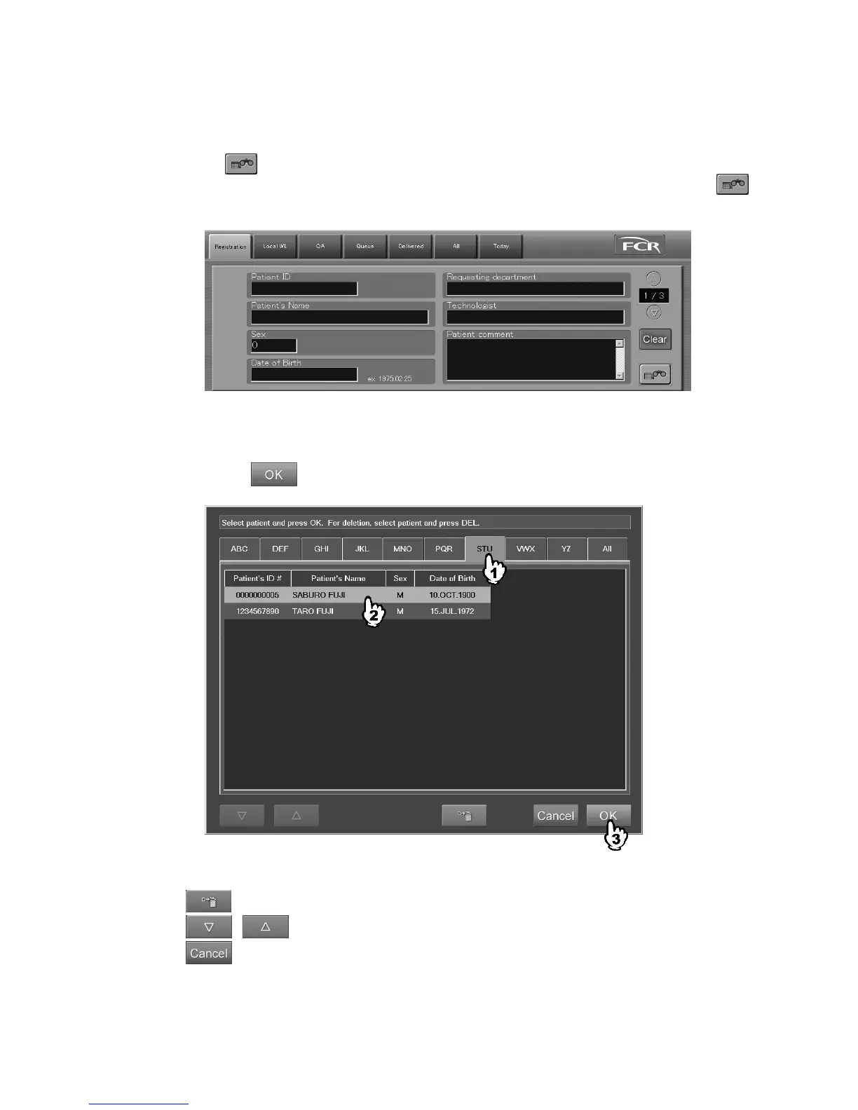 The patient information selection box will be displayed.