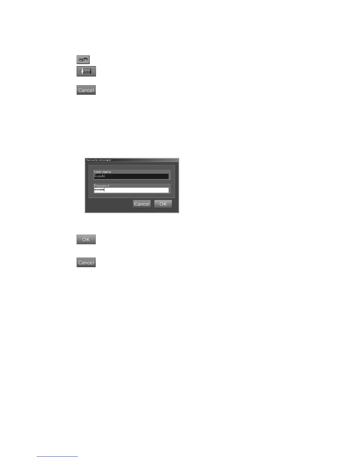 Input the “User name” and “Password” after another technologist has been selected and select