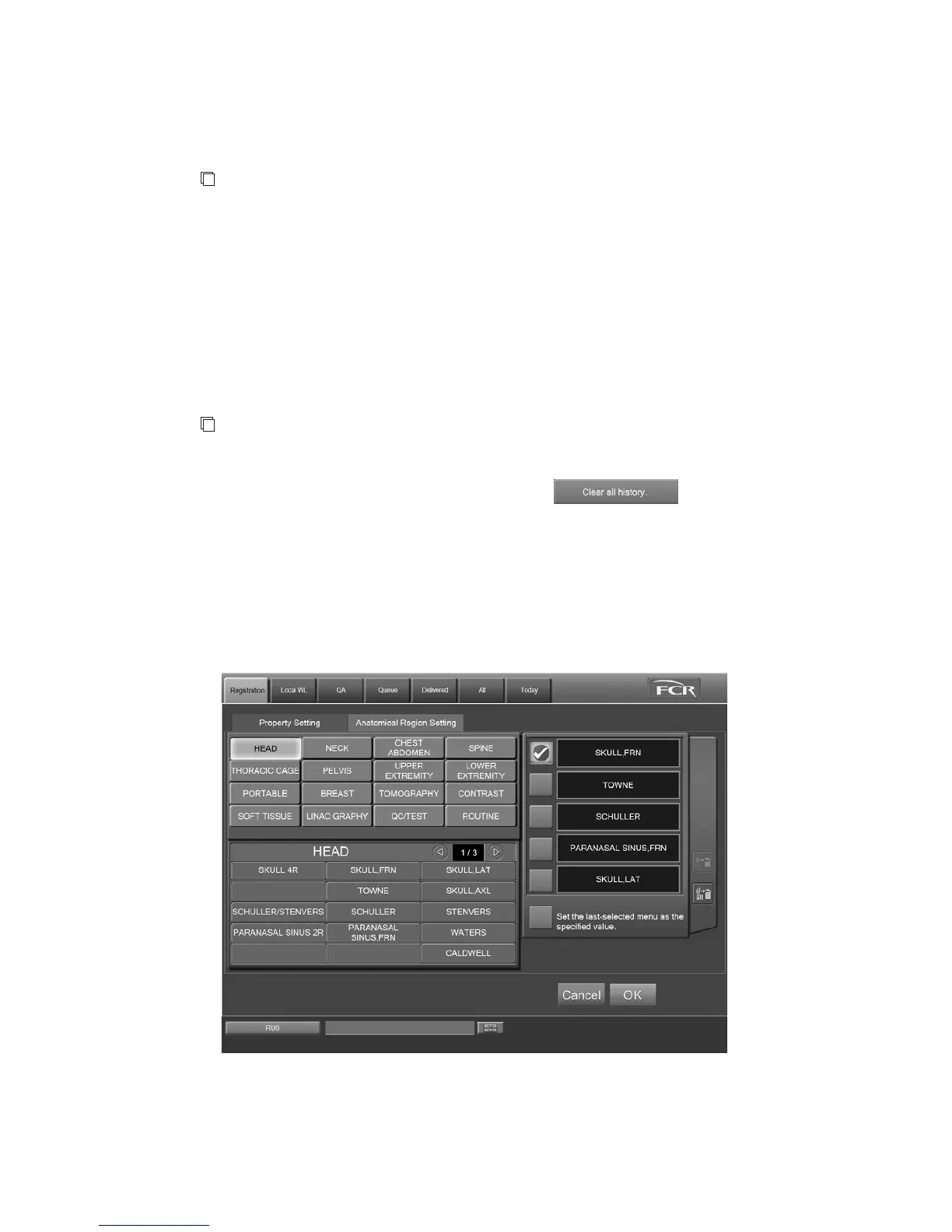 You can set the exposure menus for examination order in advance. Note that only up to five exposure
