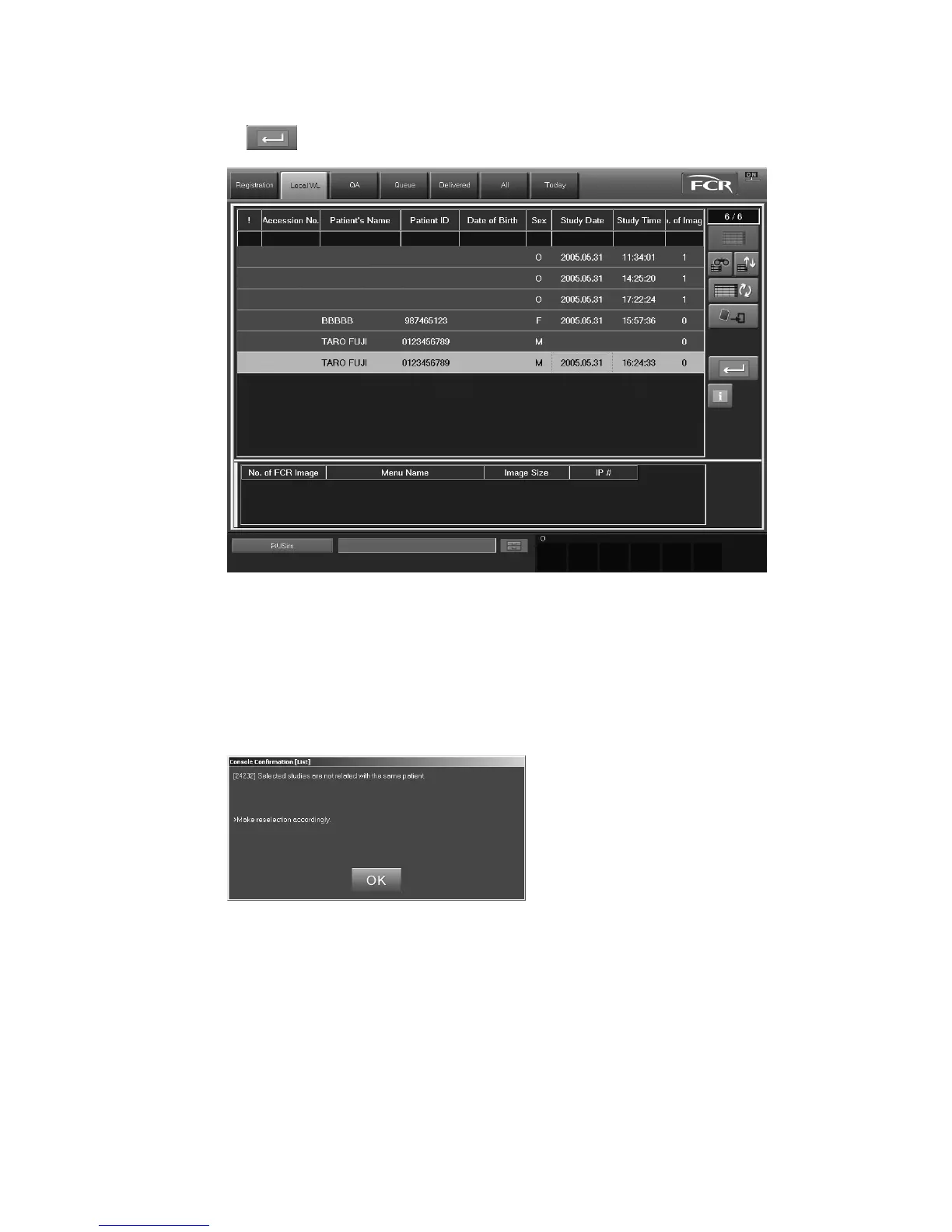Select studies for the same patient from among the studies stacked to the “Local WL” list, and then
