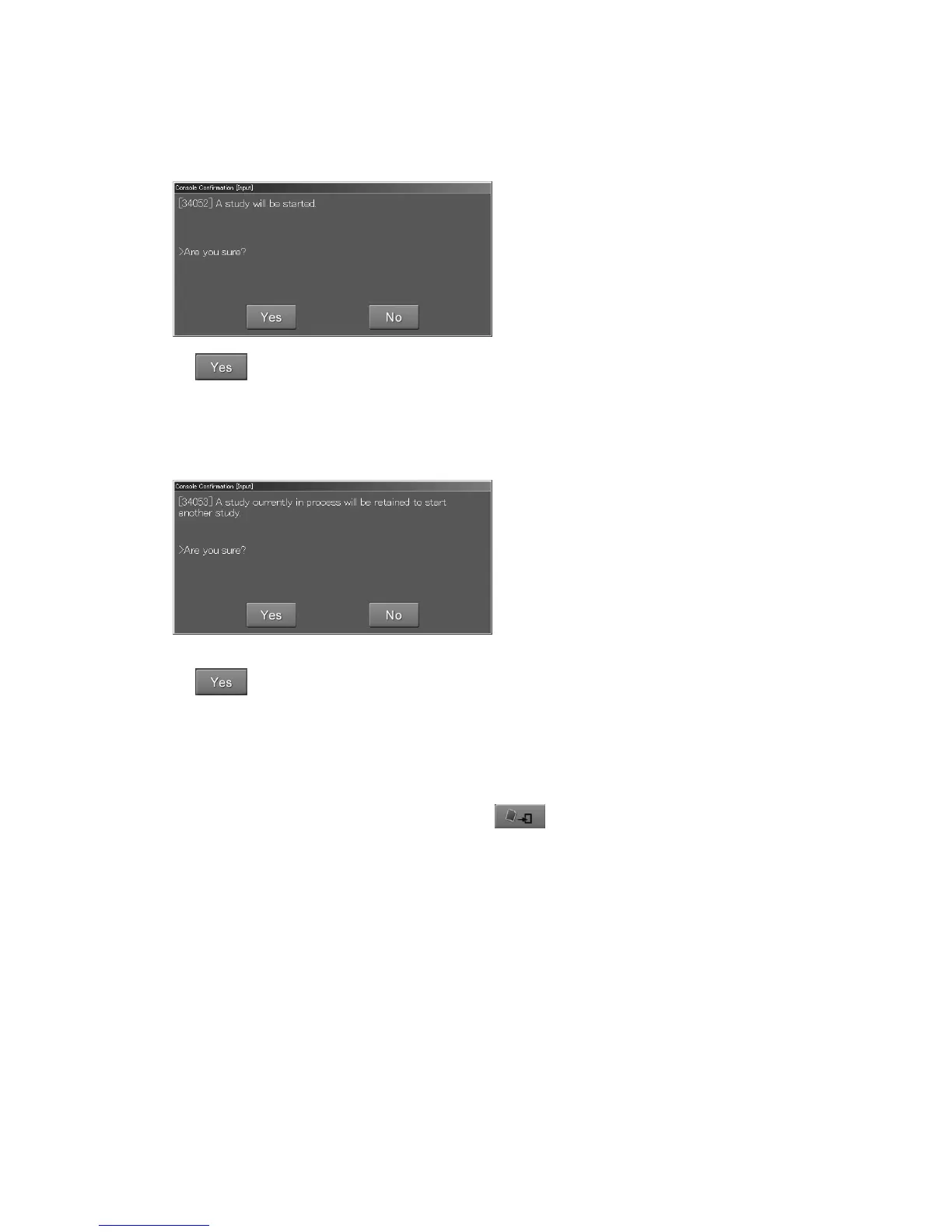 (When the resumed study is ended, the screen returns to the suspended study.)