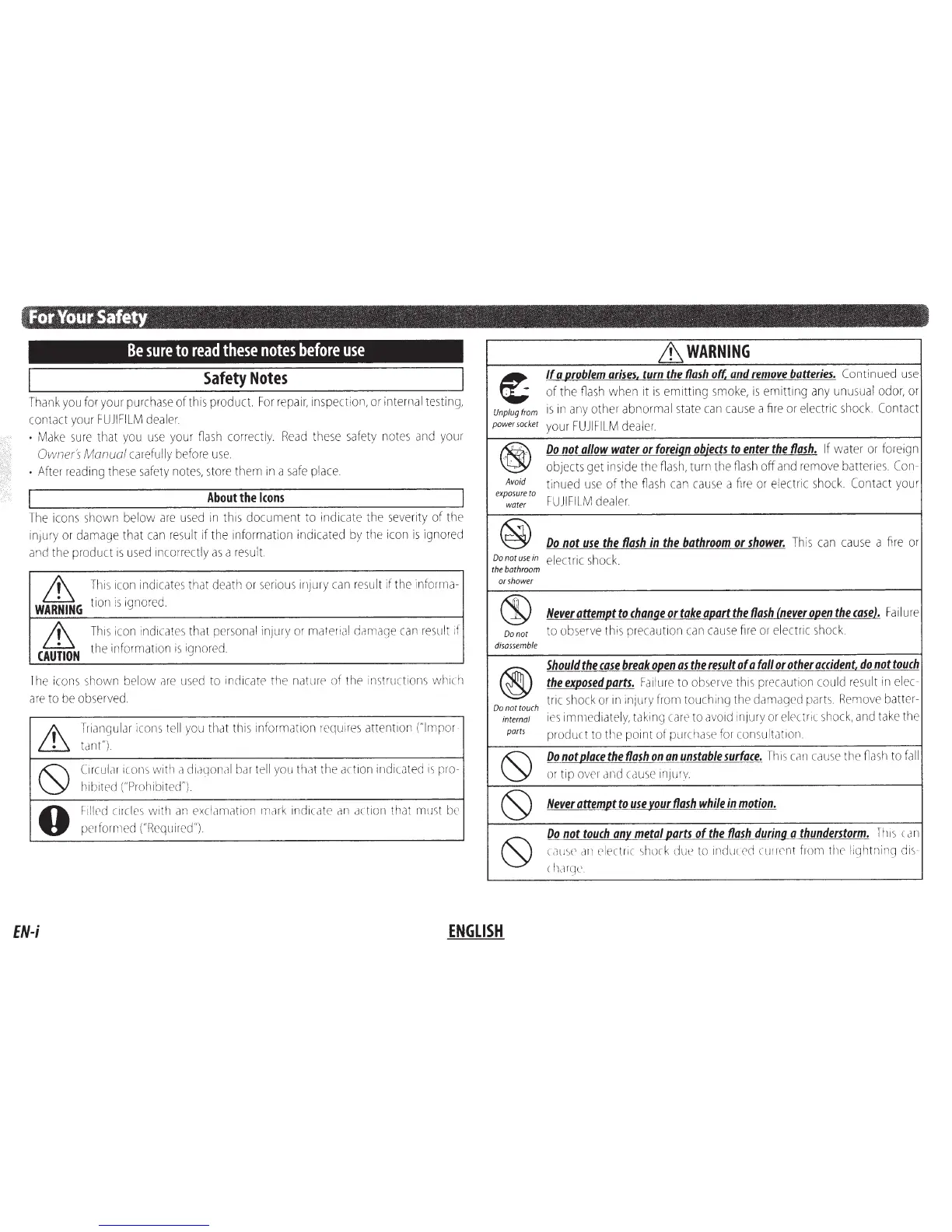 FujiFilm EF-X20 - Safety Precautions; General Safety Guidelines; Understanding Safety Icons