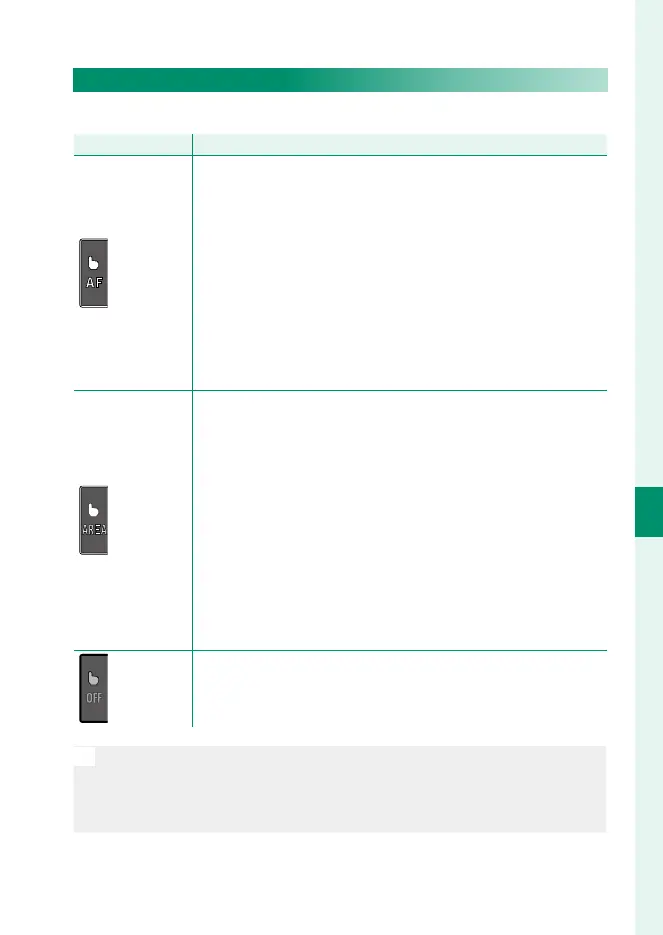 The behavior of the touch screen varies with the AF mode.