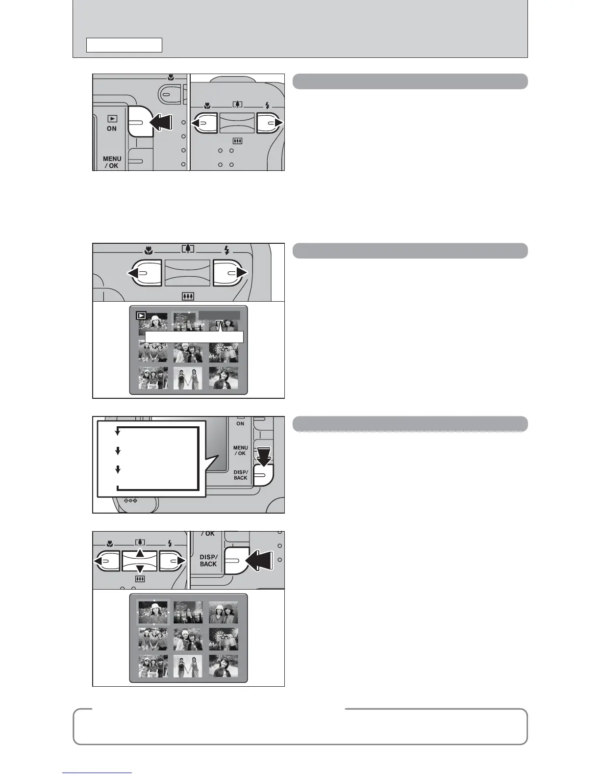 In Playback mode, press the “DISP/BACK” button