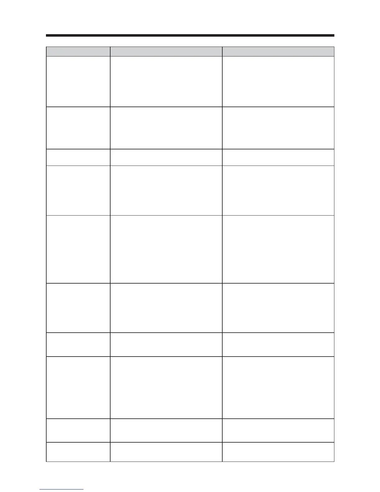 Troubleshooting Possible causes Solutions