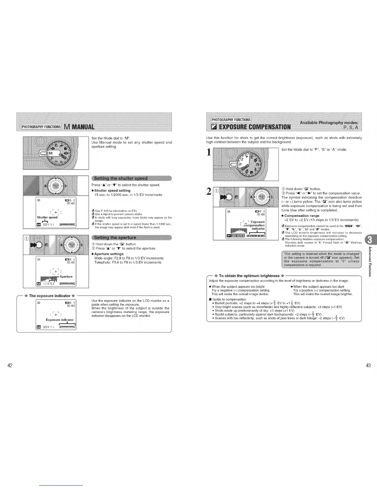 ,, Scenes with low reflectivity, such as shots of pine trees or dark foliage: -2 steps (-_- EV)