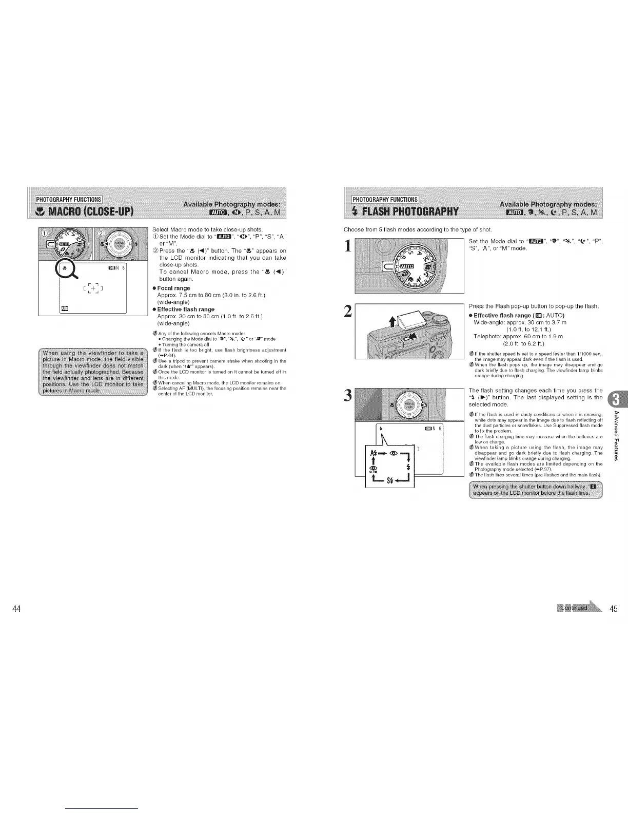 e Effective flash range (1_ : AUTO)