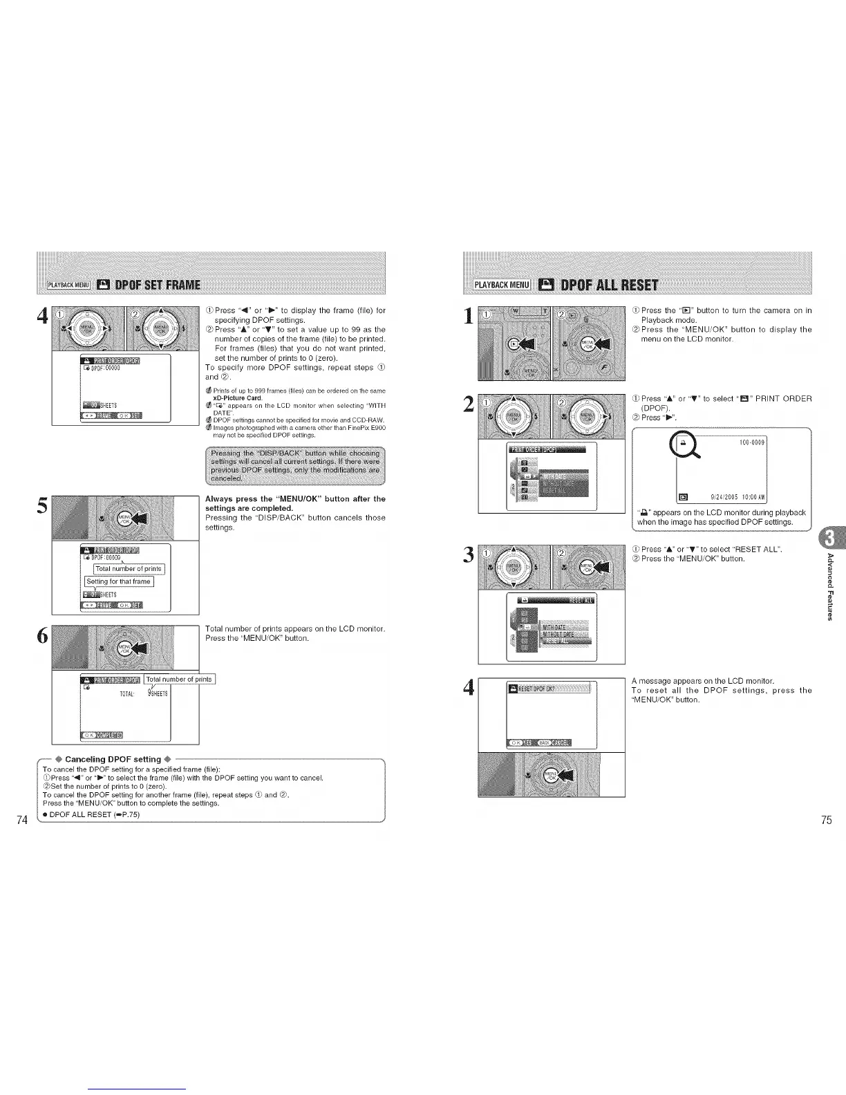 ITo cancel the DPOF setting for another frame (file), repeat steps 0_ and @.