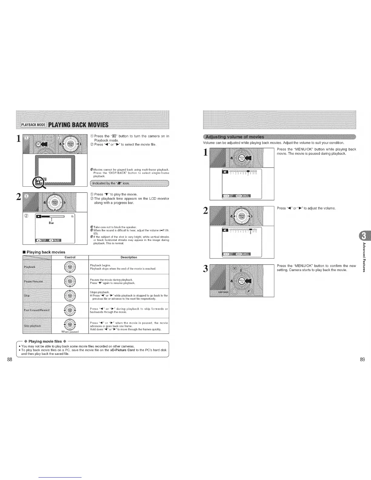 Volume can be adjusted while playing back movies. Adjust the volume to suit your condition.