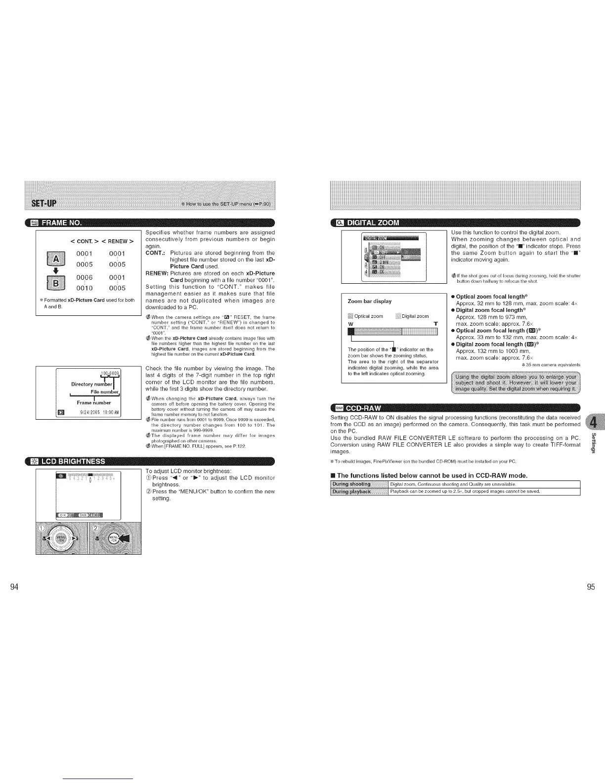 [] The functions listed below cannot be used in CCD-RAW mode.