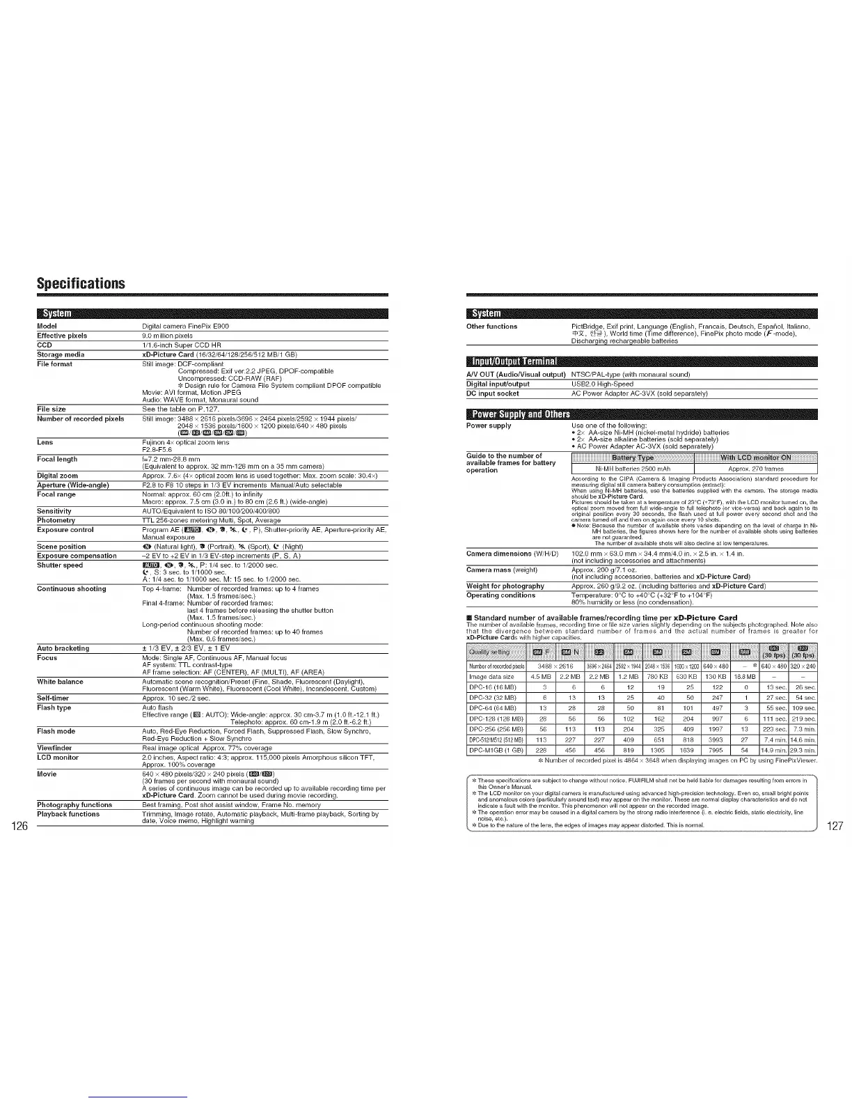_ These specifications are subject to change without notice. FUJIFILM shall not be held liable for damages resulting from errors in