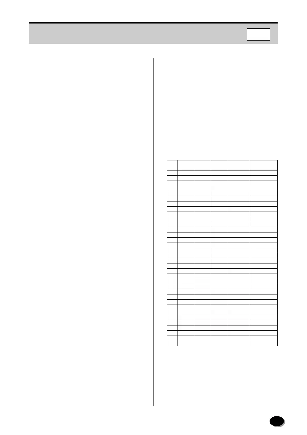 table below.