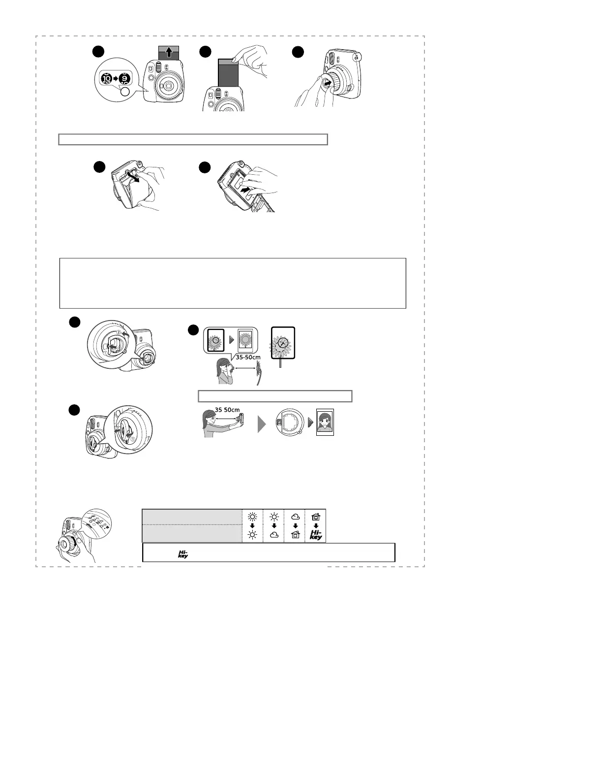 When “0” is displayed on the fi lm counter, unload the fi lm pack following the procedure below and as indicated on the INSTAX mini fi lm pack instructions.
