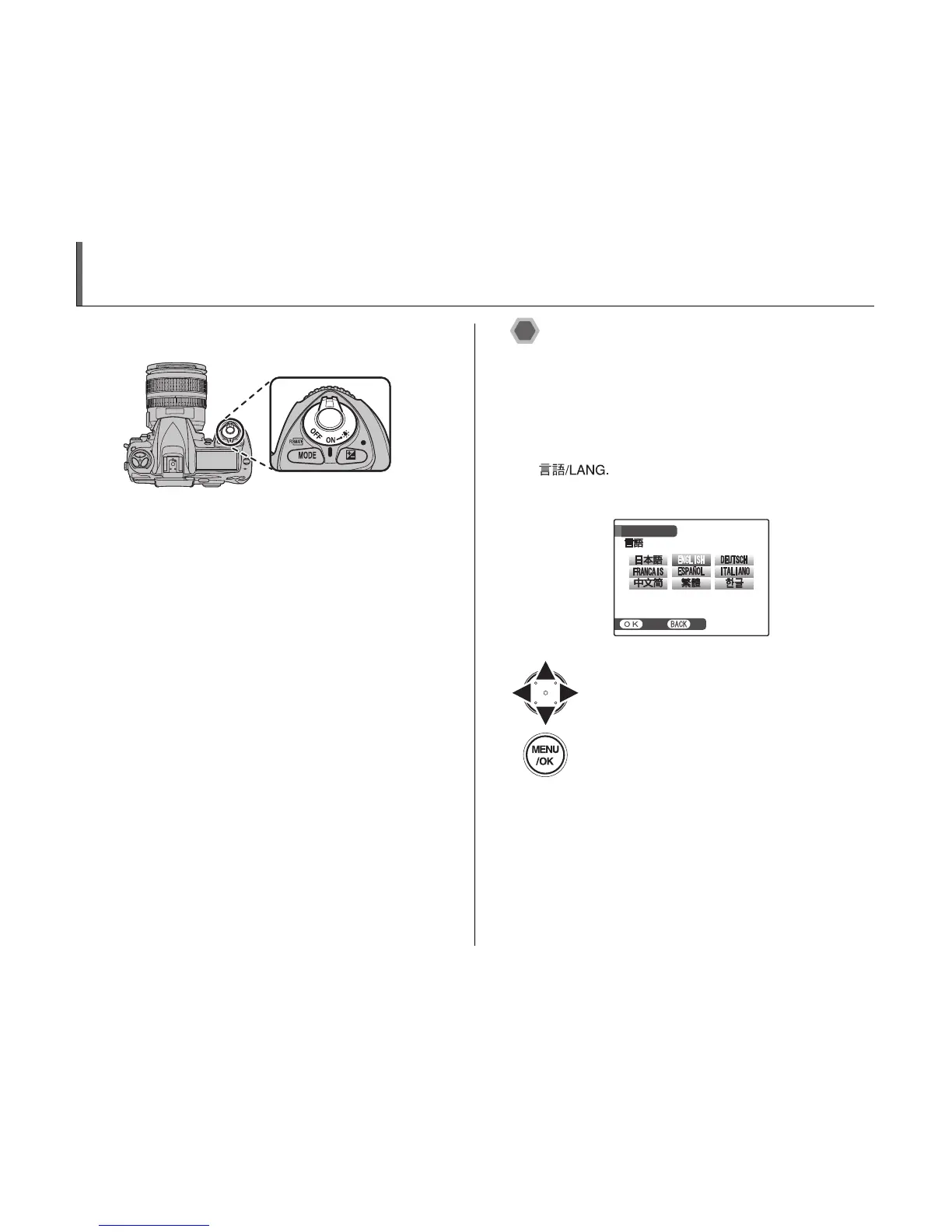 Set the power switch to ON to turn the camera on.