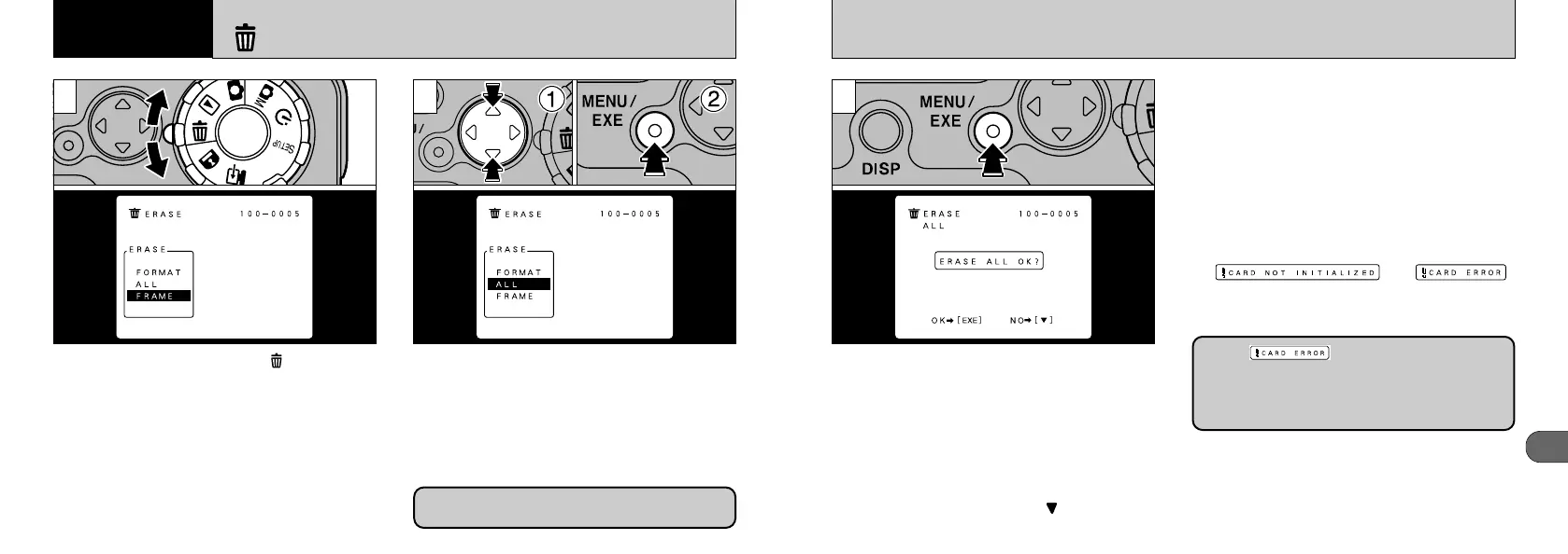 “MENU/EXE” button to proceed with erasing the