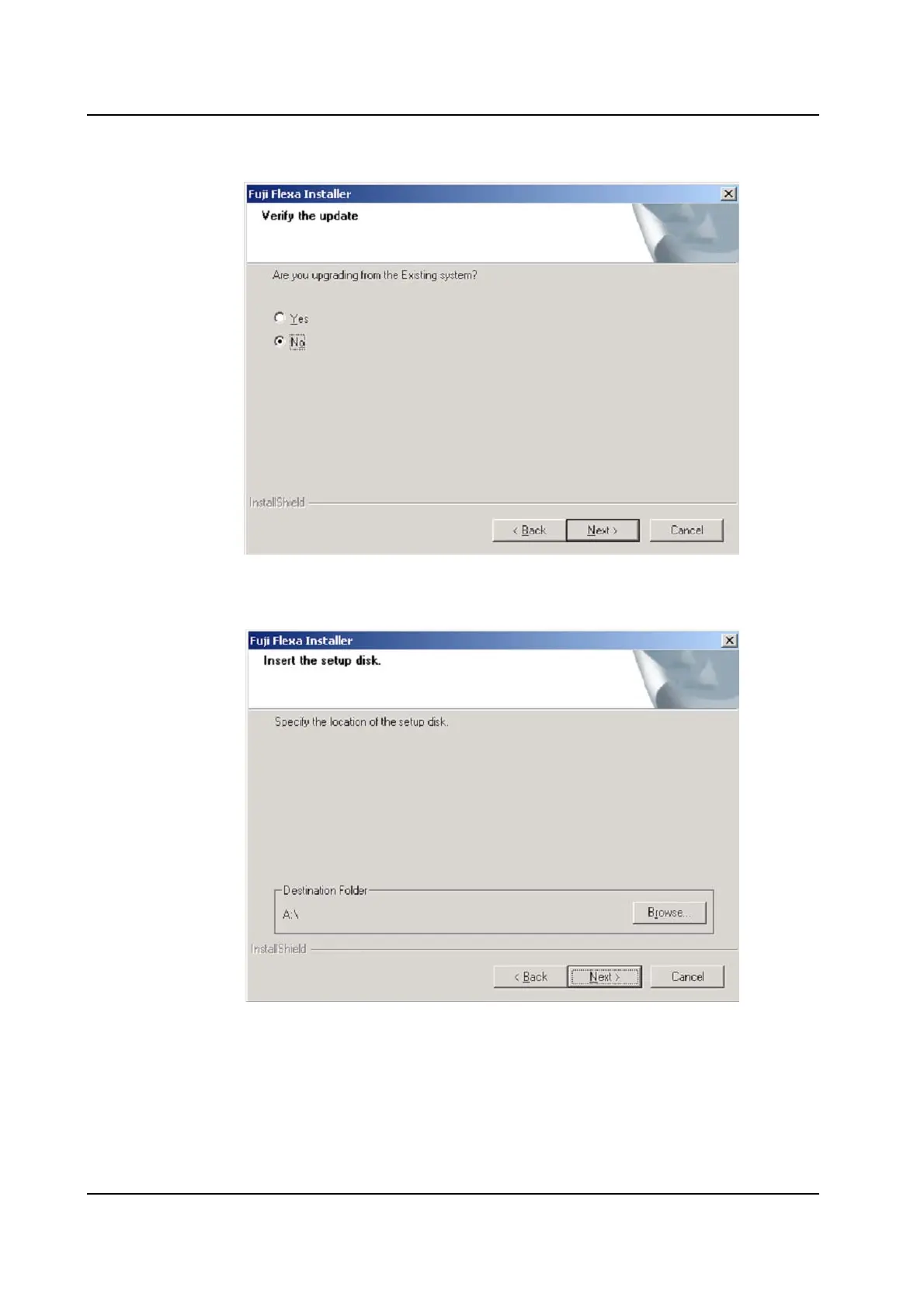 5. Insert the Fuji Flexa Setup Disk in the floppy disk drive and click [Next] to display the