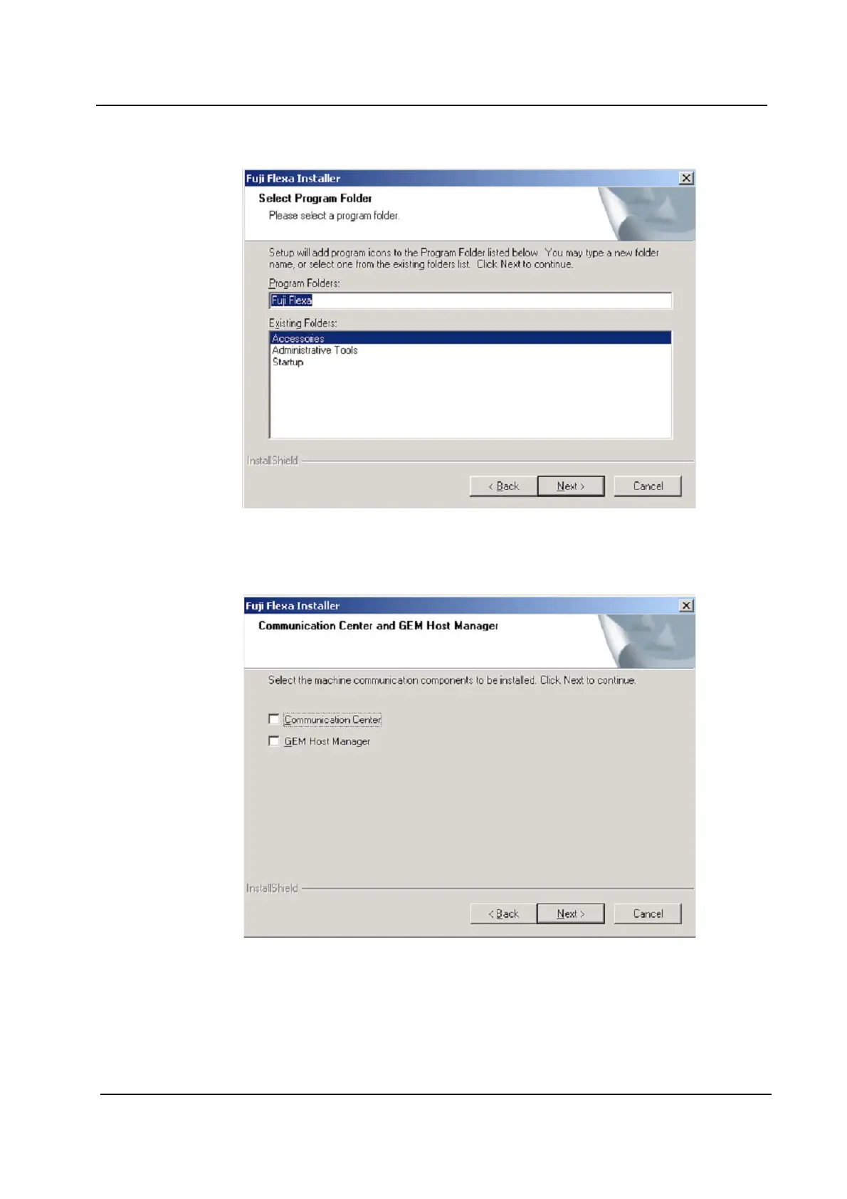 10.Select the folder for the Fuji Flexa startup menu shortcuts and click [Next].
