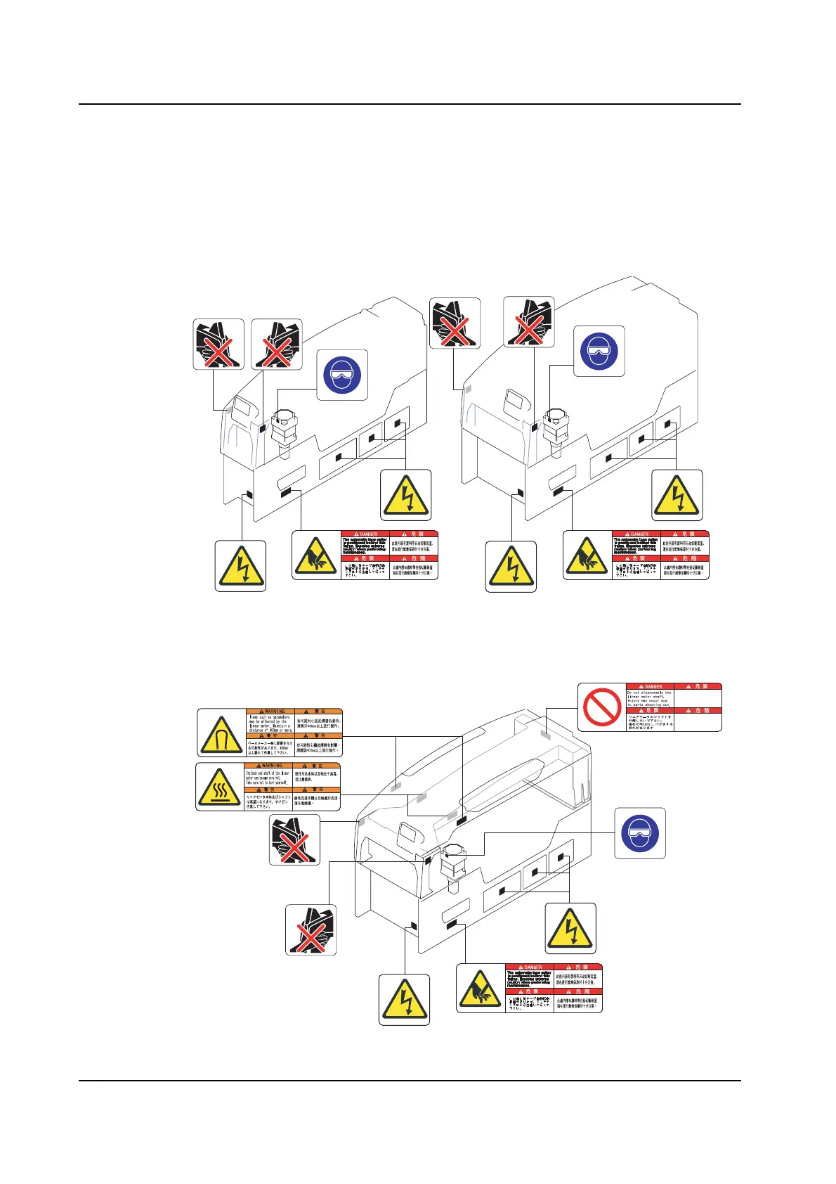 To warn the operator of hazards, safety labels are attached to the machine at the positions