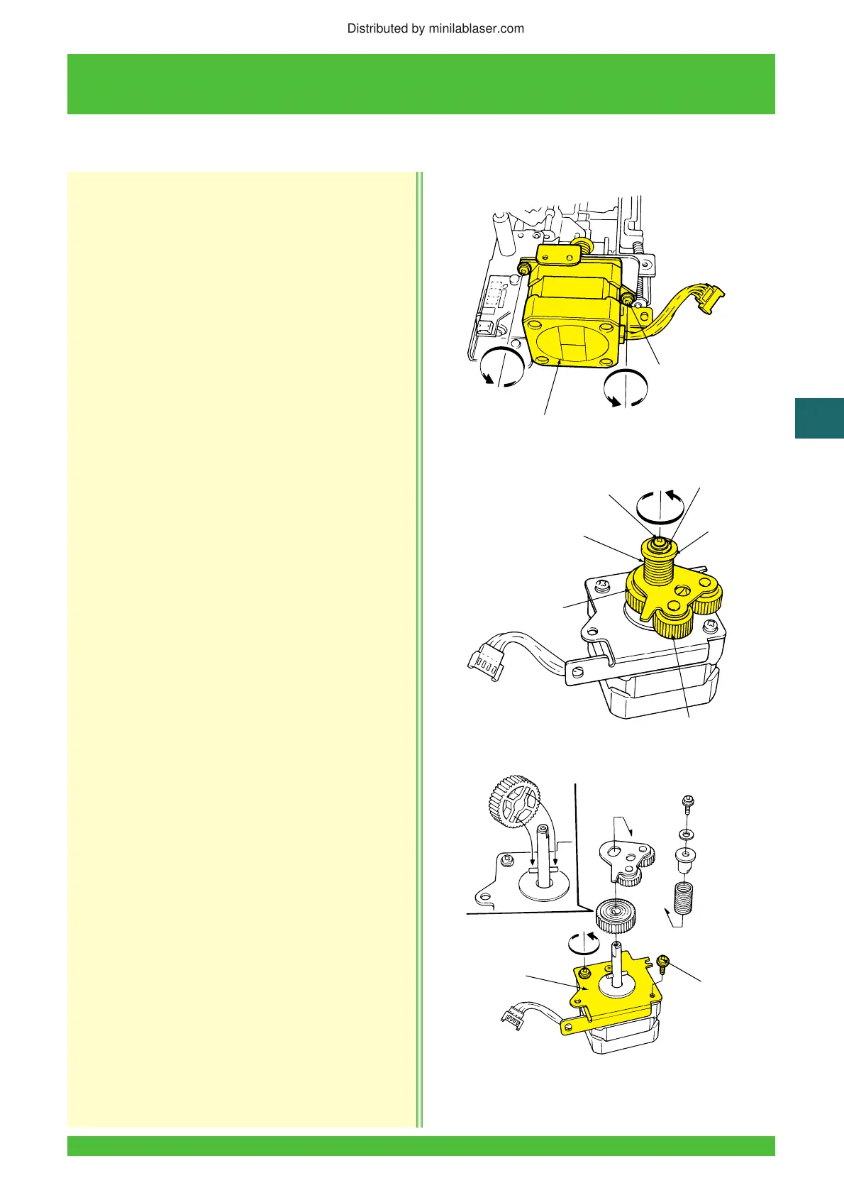 4. Remove the screw, D-washer, collar, spring, gear