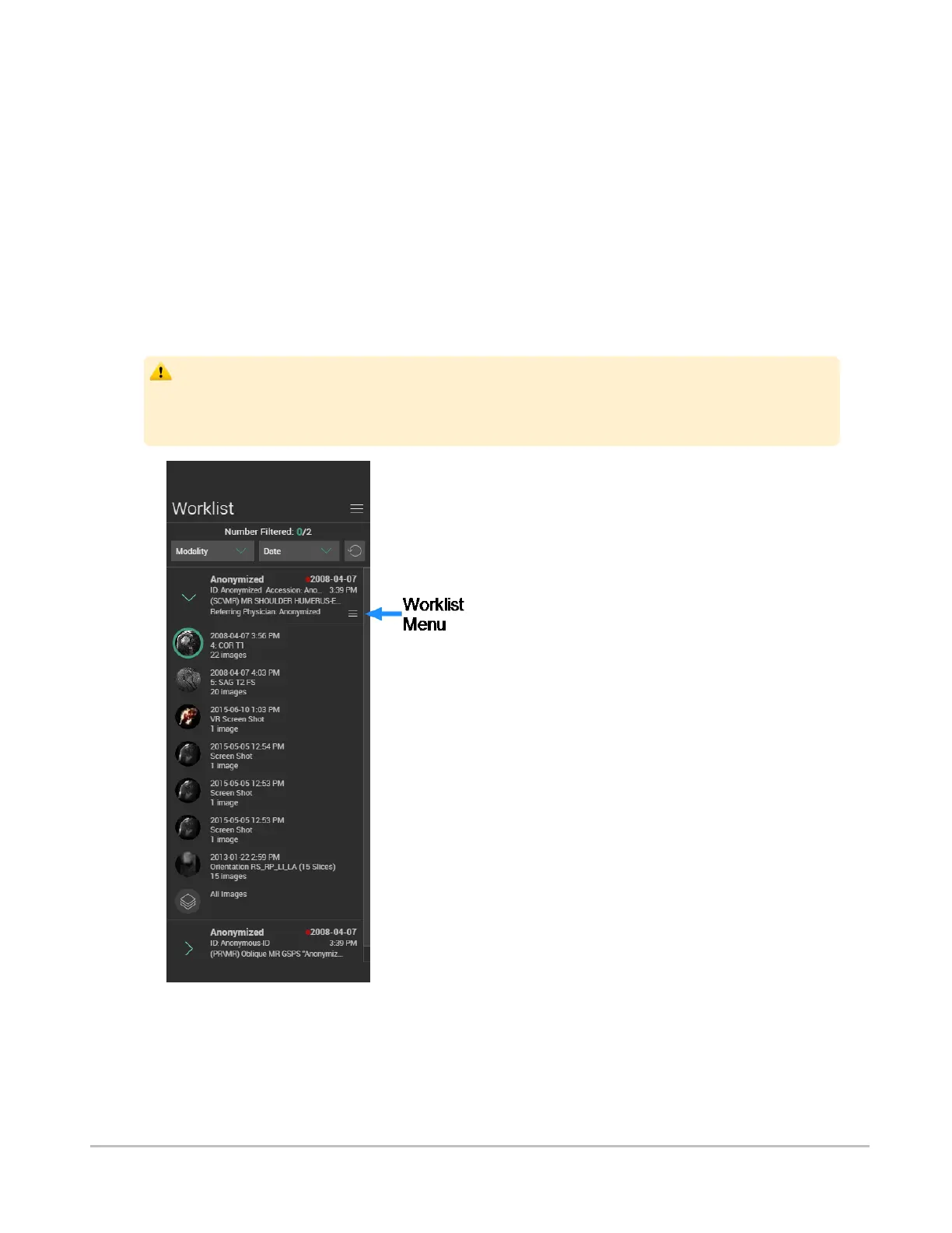 When interacting with the worklist, you should be aware that while you are viewing any images