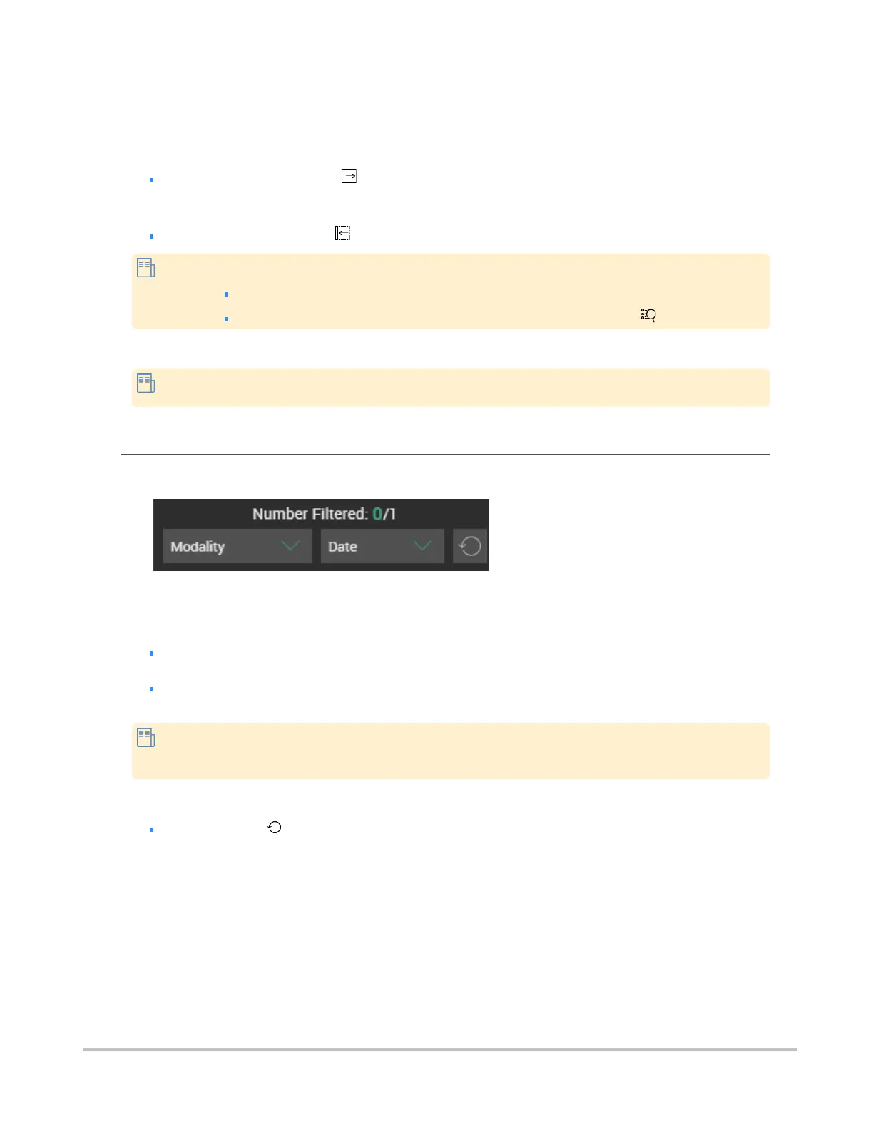 You can filter the studies being displayed in the worklist, either by modality or by date.
