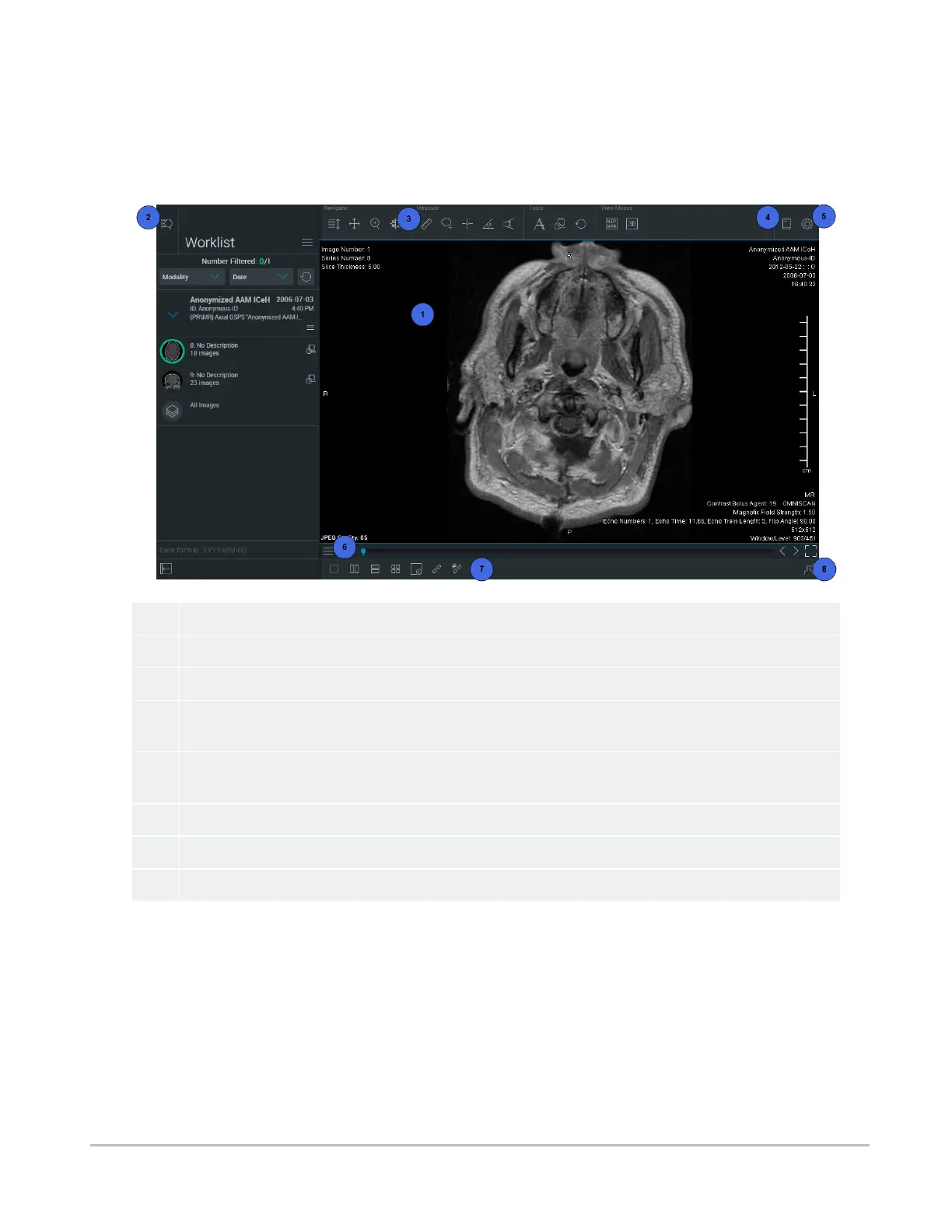 The viewer displays images and data, and provides tools for interacting with these images and data in