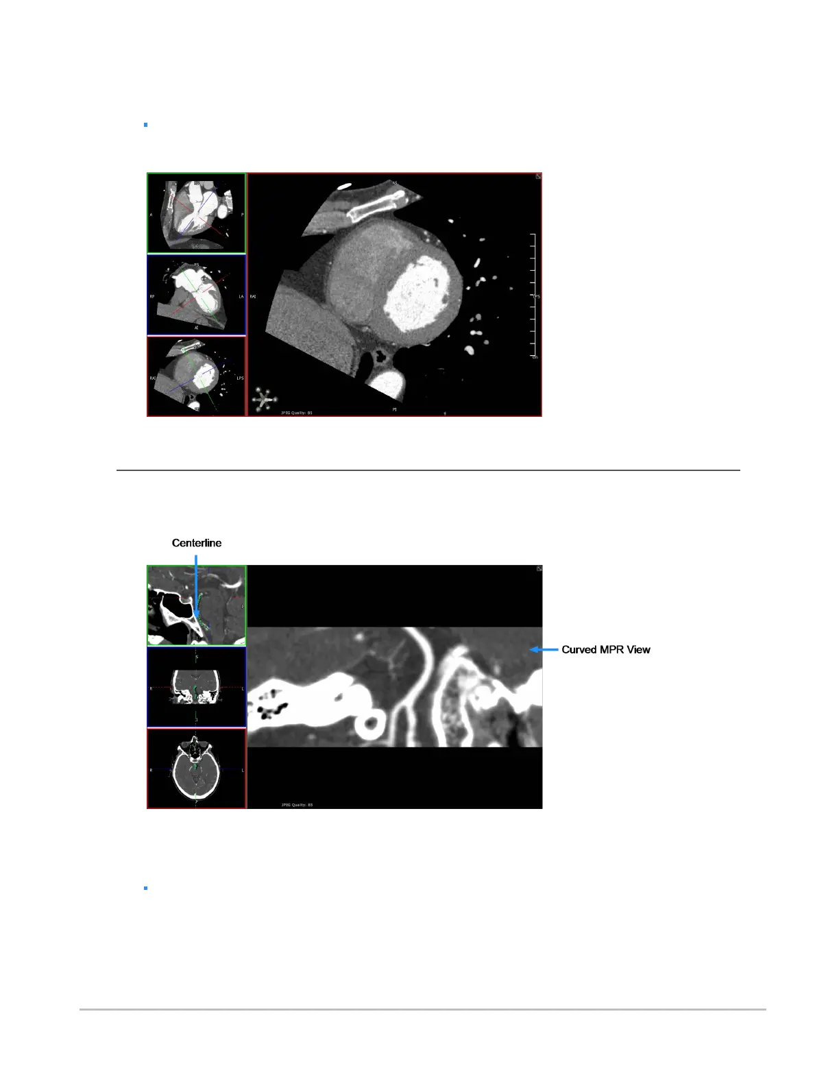 You can assign the curved MPR view to the main view by double-clicking the curved MPR view, as seen in