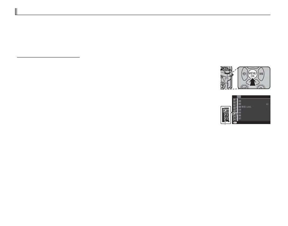 Press the selector left to highlight the tab for the current menu.