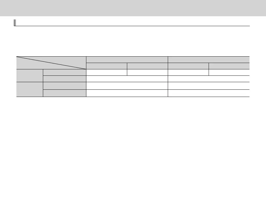 The following table shows the recording time or number of pictures available at di erent image sizes.