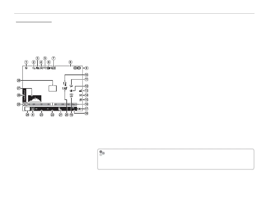 The following types of indicator may be displayed during shooting and playback. In the description