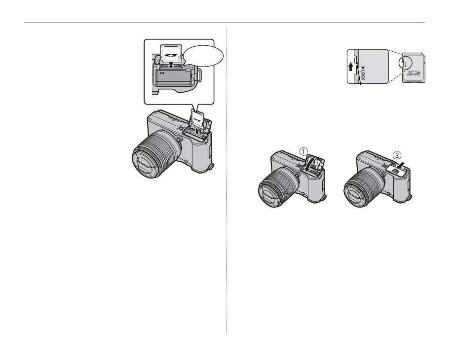 Before inserting a memory card, slide the write-