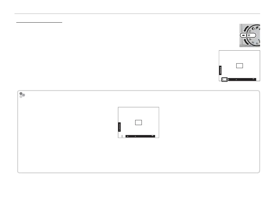 R The manual exposure display includes an exposure indicator that shows the amount the