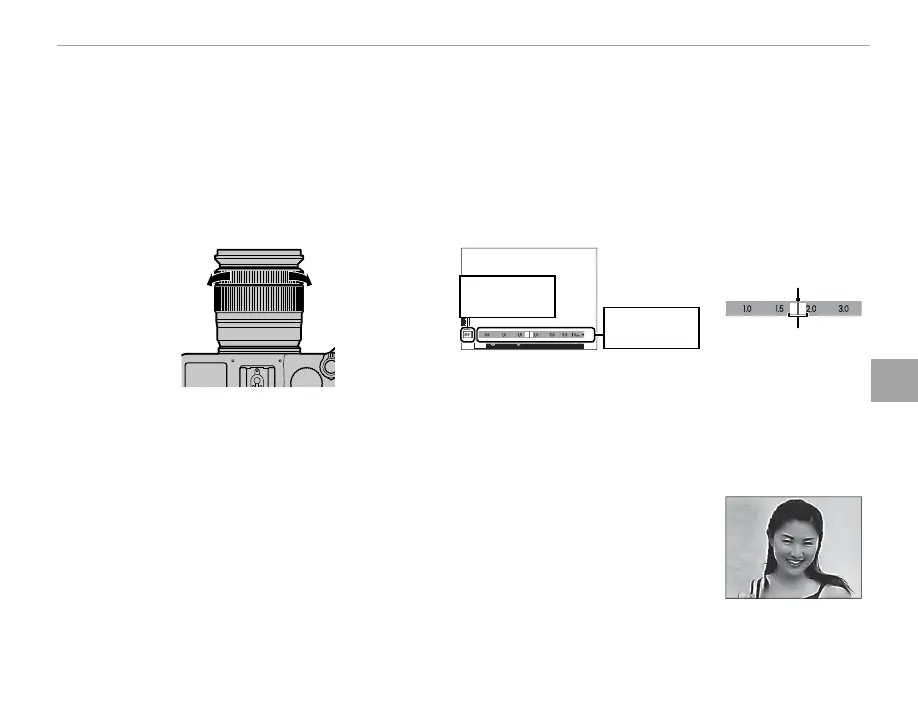 R The camera can show focus distance in meters or feet. Use the M FOCUS SCALE UNITS