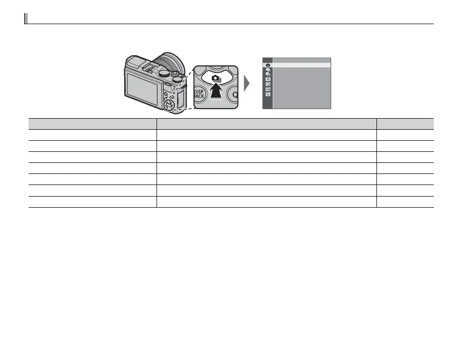 shooting mode. The options available vary with the shooting mode.