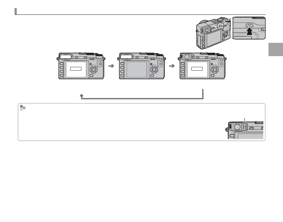 The view nder turns on automatically when you put your eye to the view nder, and the