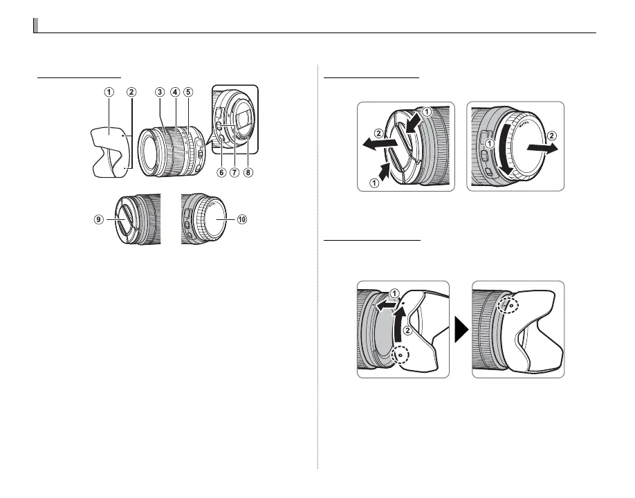 FujiFilm X-E2S - Lenses; Parts of the Lens; Removing the Caps; Attaching the Hood