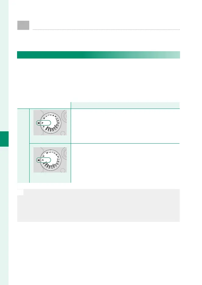 Lenses without aperture rings: Mode P can be selected
