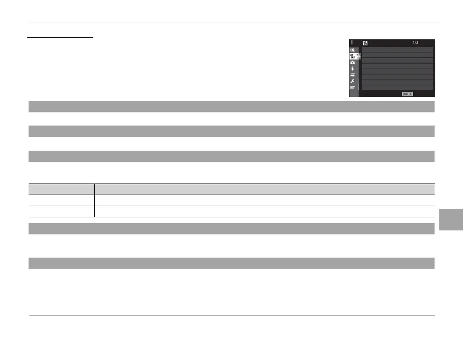 To adjust focus settings, press MENU/OK in the shooting display and select the