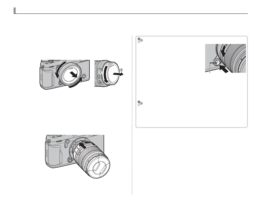 Q Care is required to prevent dust or other particles from entering the camera while attaching and removing lenses.