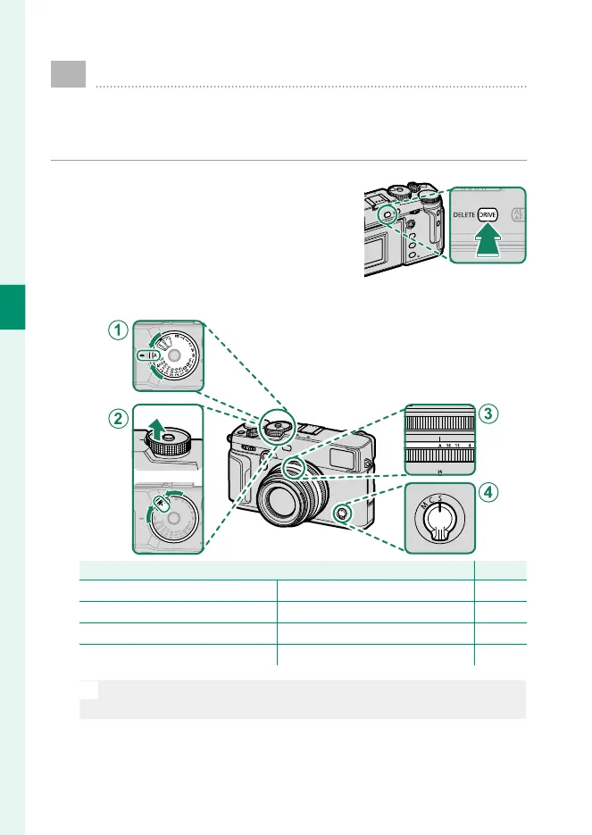 To choose another shutter speed after selecting A(auto), hold the