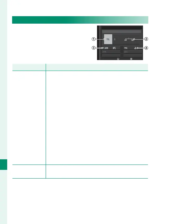 TTL: TTL mode. Adjust fl ash compensation (
